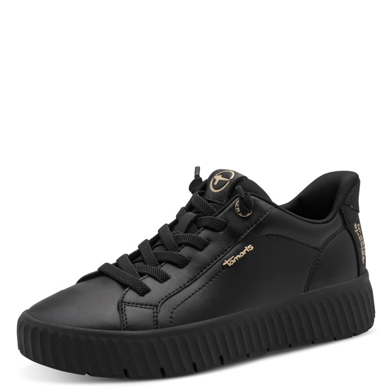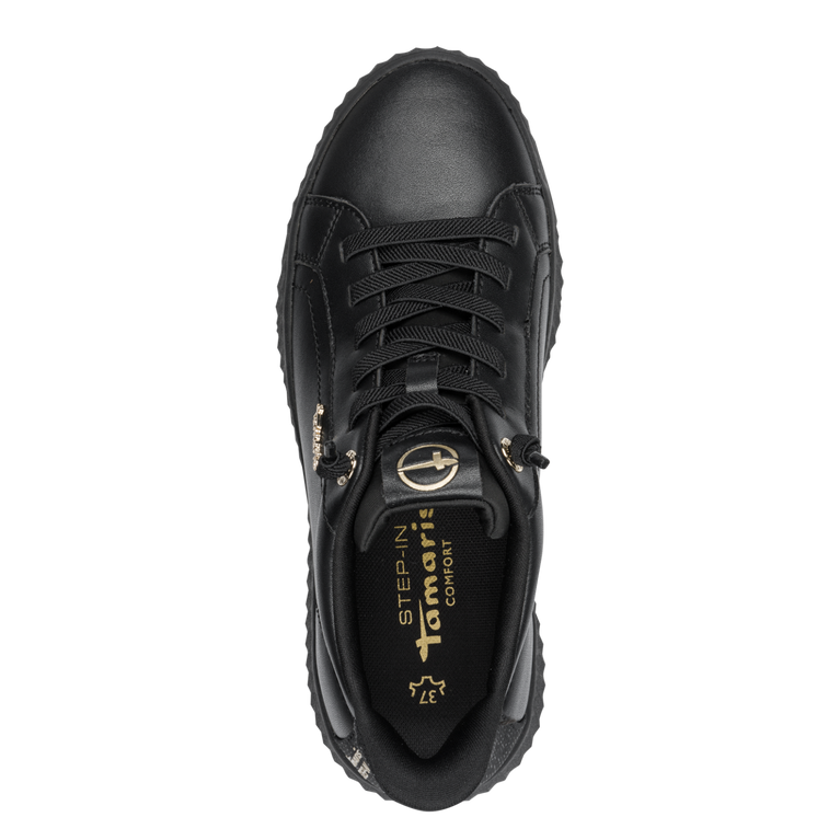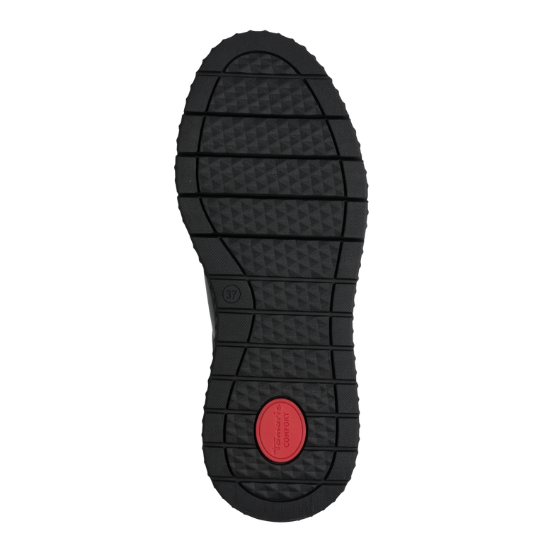 En svart sneakers från Tamaris Comfort som innebär att den också har en bredare läst.