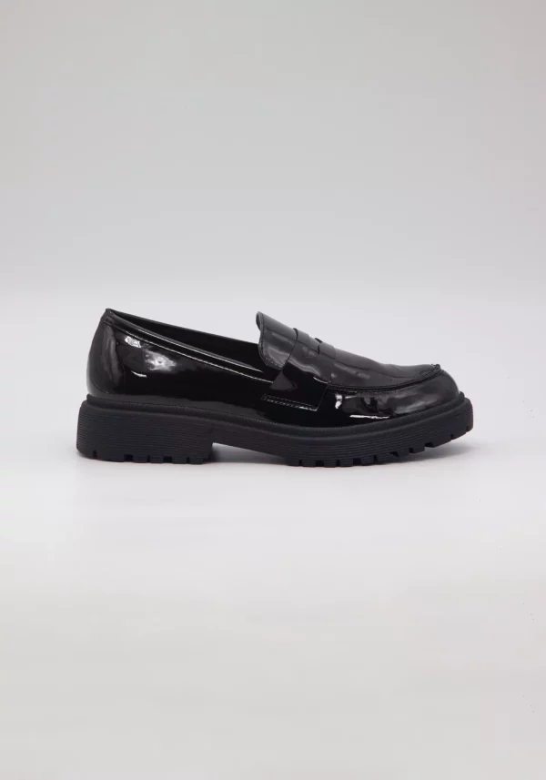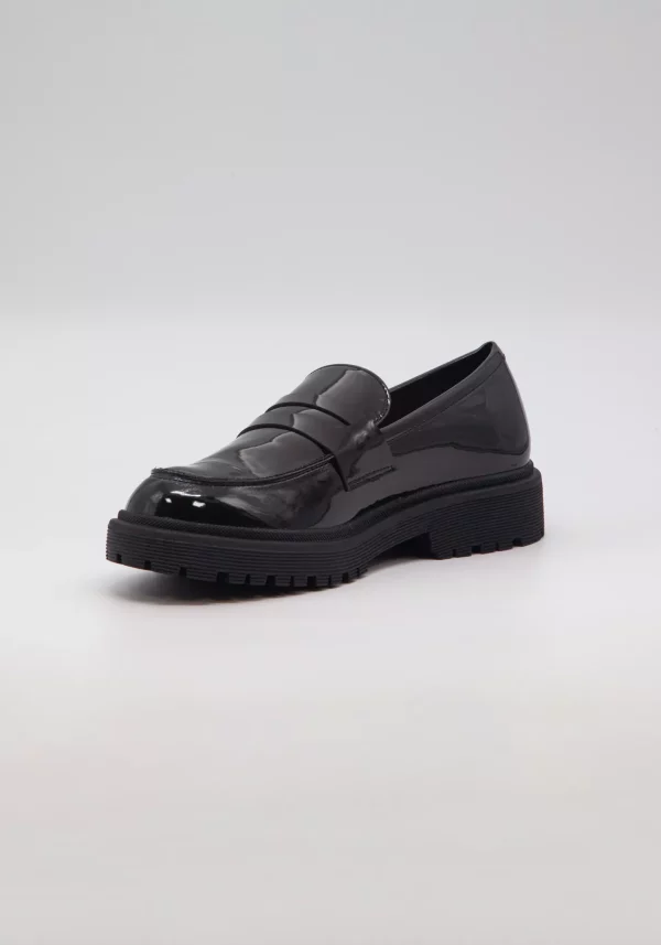 Klassiska loafers med en blank yta och små tassels fram på foten.