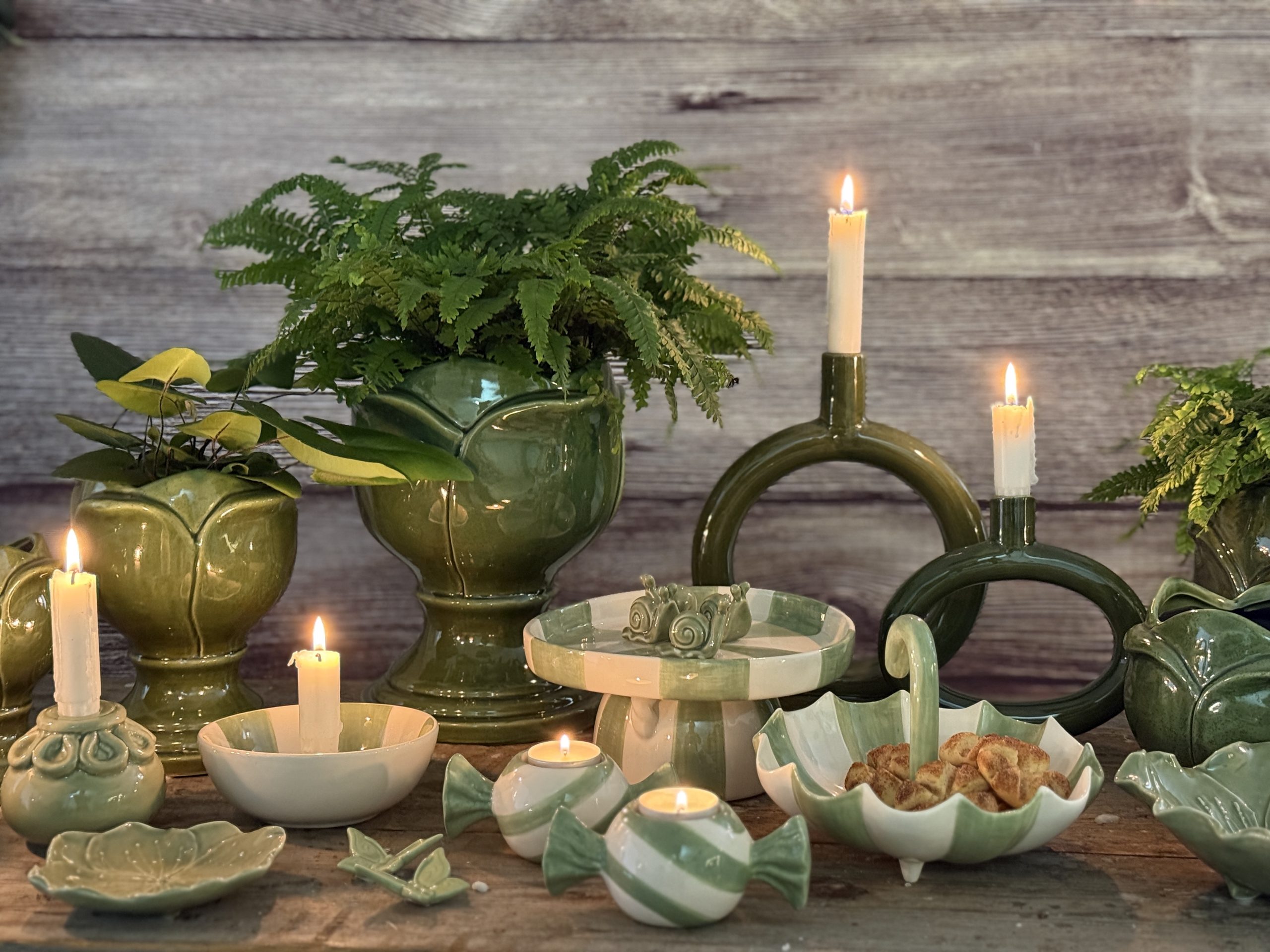 Tivoli-serien bjuder på lekfull design med mjuka former och dekorativa ränder i harmoniska gröna toner.