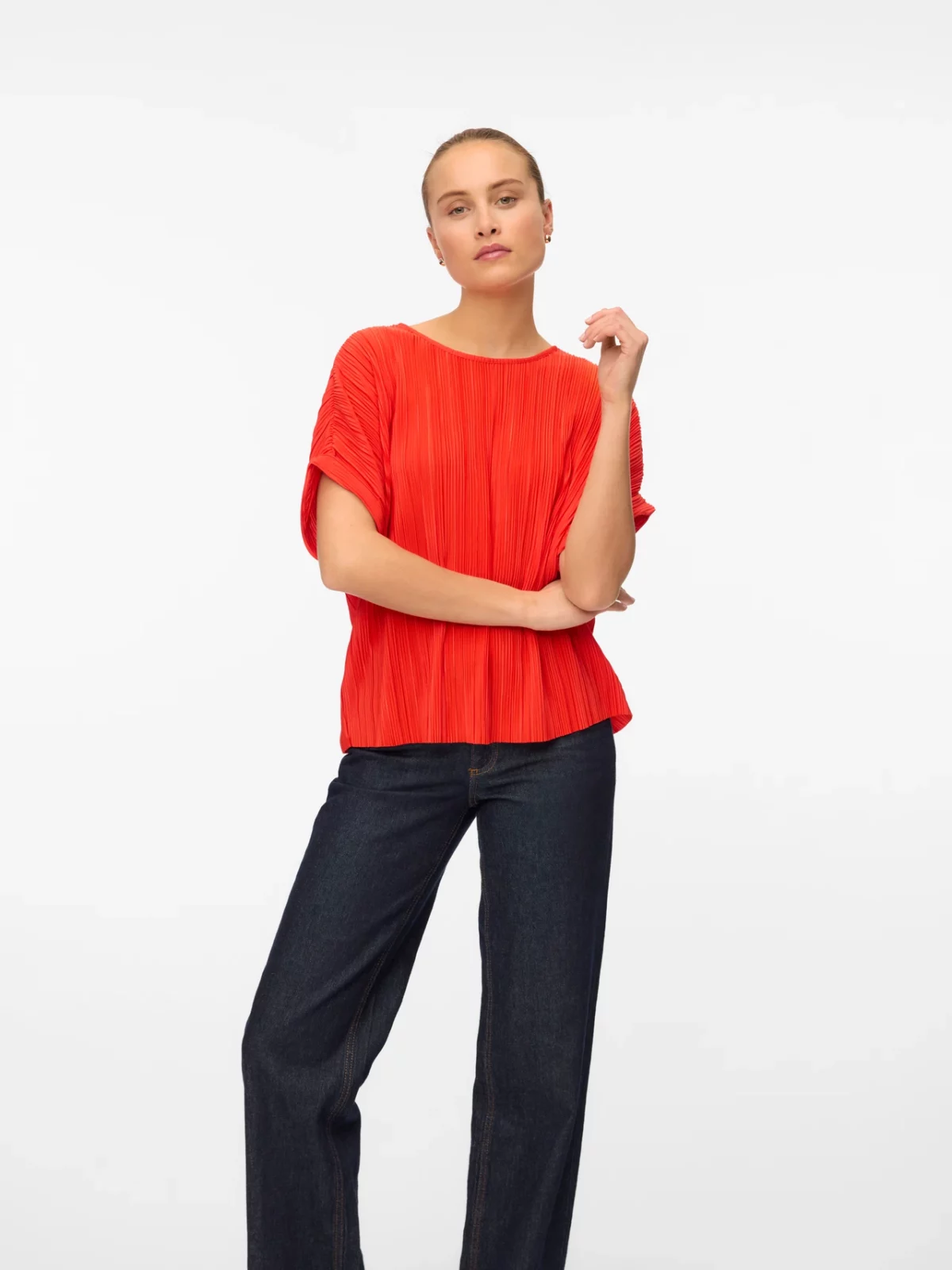 Avslappnad plisserad topp, snygg att bära med ett par sköna brallor eller varför inte styla upp den med en kavaj och ett par klackar.