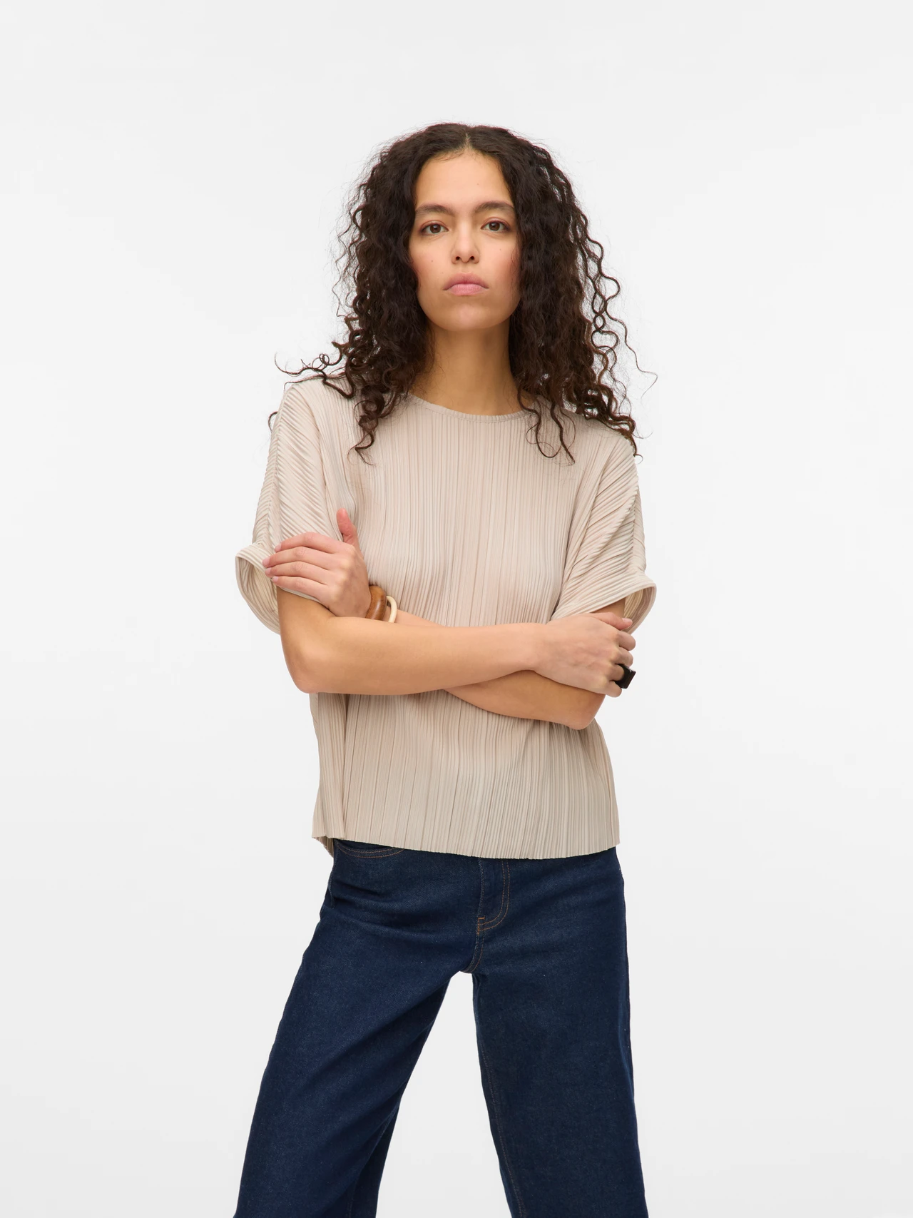 Avslappnad plisserad topp, snygg att bära med ett par sköna brallor eller varför inte styla upp den med en kavaj och ett par klackar.