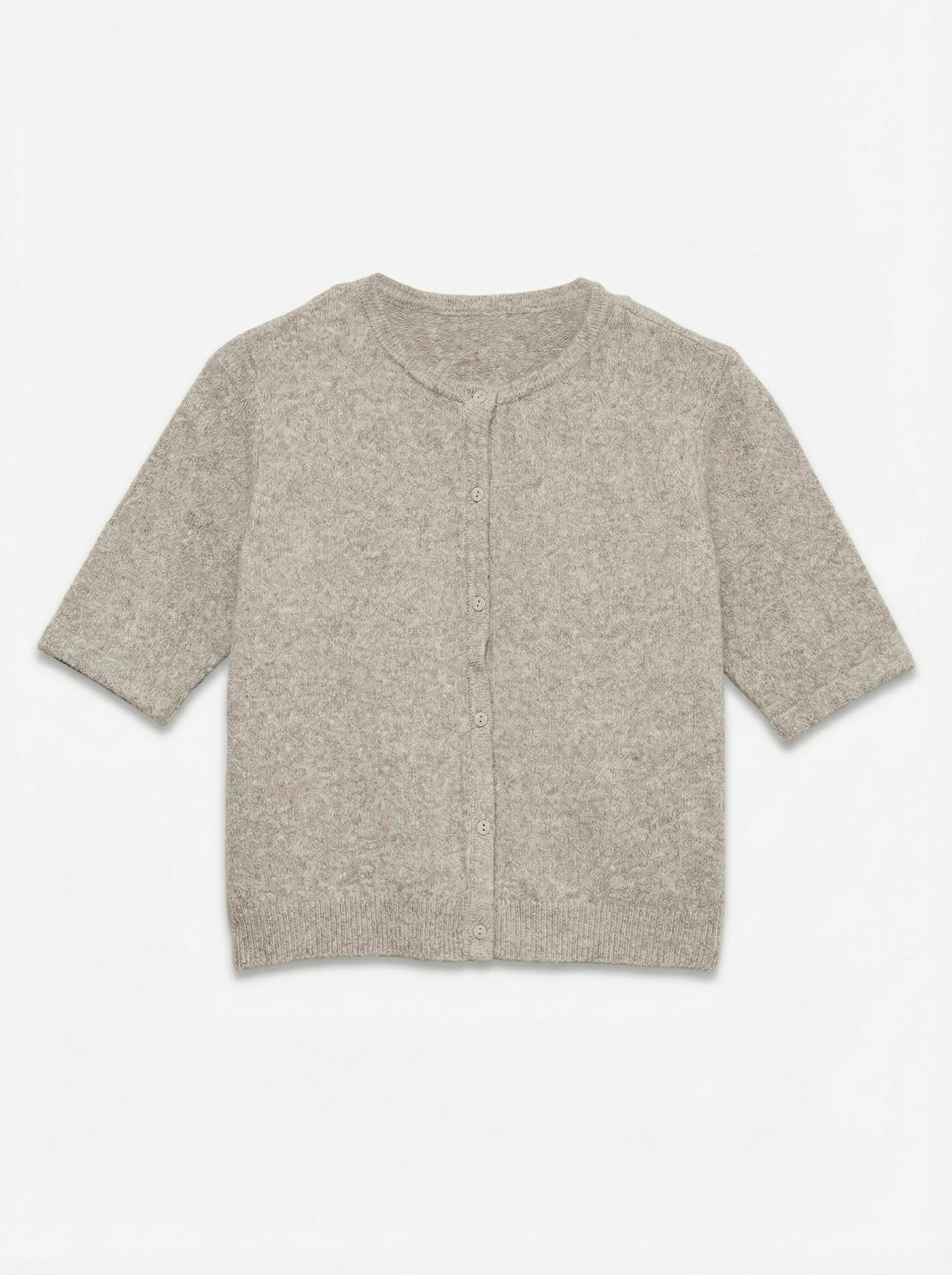 En snygg stickad kofta med klassisk rund hals och kort ärm – perfekt för både vardag och jobb.