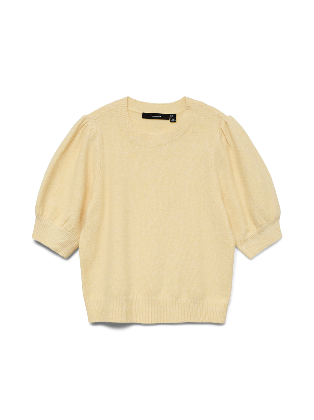 En snygg stickad tröja med klassisk rund hals och kort ärm – perfekt för både vardag och jobb.