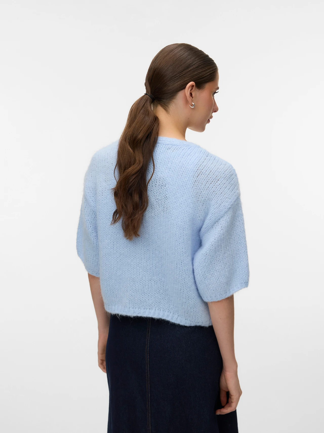 En stickad kofta med grövre struktur och kort ärm – perfekt för både en dag på jobbet eller en tur på stan!