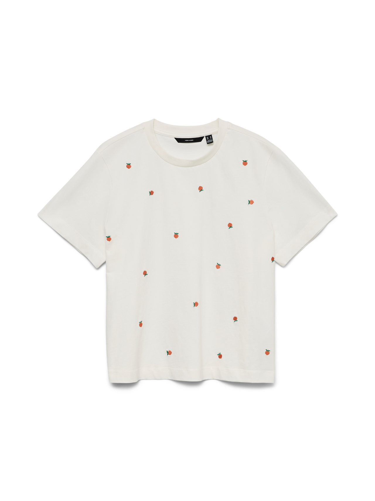 En klassisk vit T-shirt med det där lilla extra i form av broderade persikor!