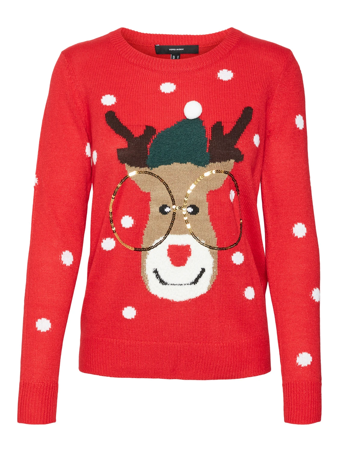 – Stickad – Paljetter – Läng ärm – Rund hals